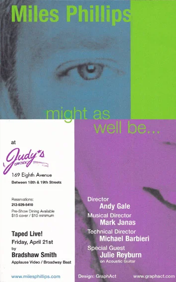 The show was also digitally recorded on video, live during the April run. The legendary Margaret Whiting happened to be in the studio when the video was being transferred. She caught Miles singing on the monitor and said "Who is this guy? Turn that up!" She immediately sat down and watched the show through to the end and then raved about Miles and the show, proclaiming "This has to be a CD!" Bradshaw Smith relayed the message from Ms. Whiting and not long after, as she suggested, "might as well be..." was released as Miles' acclaimed debut solo album!